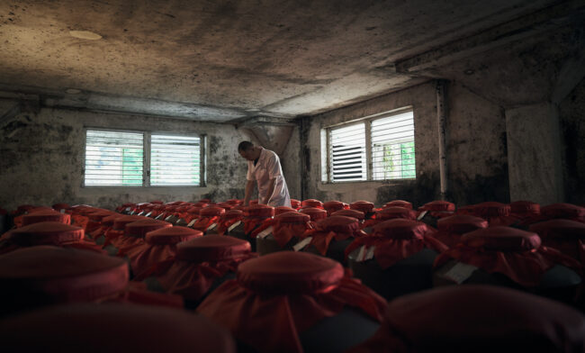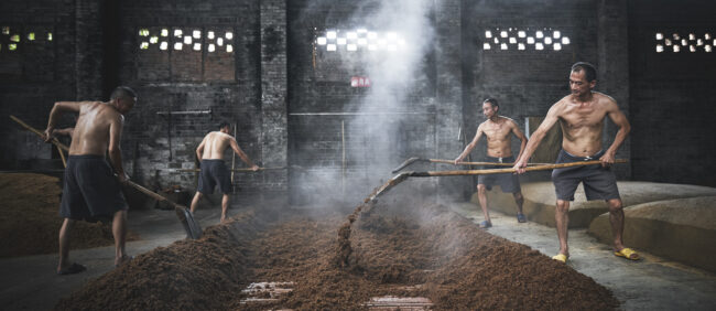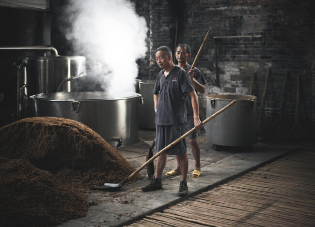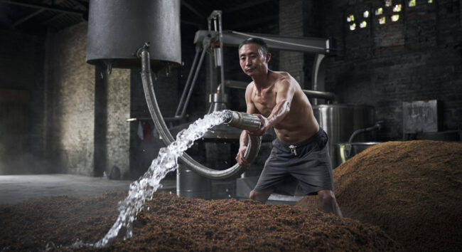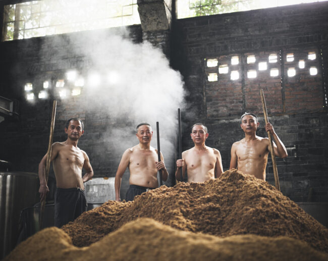 Pour l’agence City Shake, nous avons eu l’honneur d’aller documenter ce processus ancestral au coeur des immenses usines du groupe Shede, l’un des leaders chinois de distillation du baijiu. Au coeur de la province du Sichuan, nous avons passé une semaine en immersion parmi les ouvriers et artisans qui réalisent cet alcool, pour réaliser un reportage photo avec nos regards occidentaux.